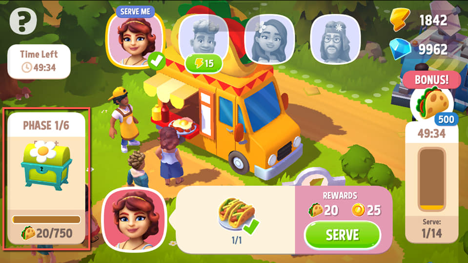 - Food Truck Event – Limited time event where you serve customers at the food truck with special event ingredients and items to get event points and earn prizes. An energy system (mulch) caps how many of the special ingredients you can grow at a time.